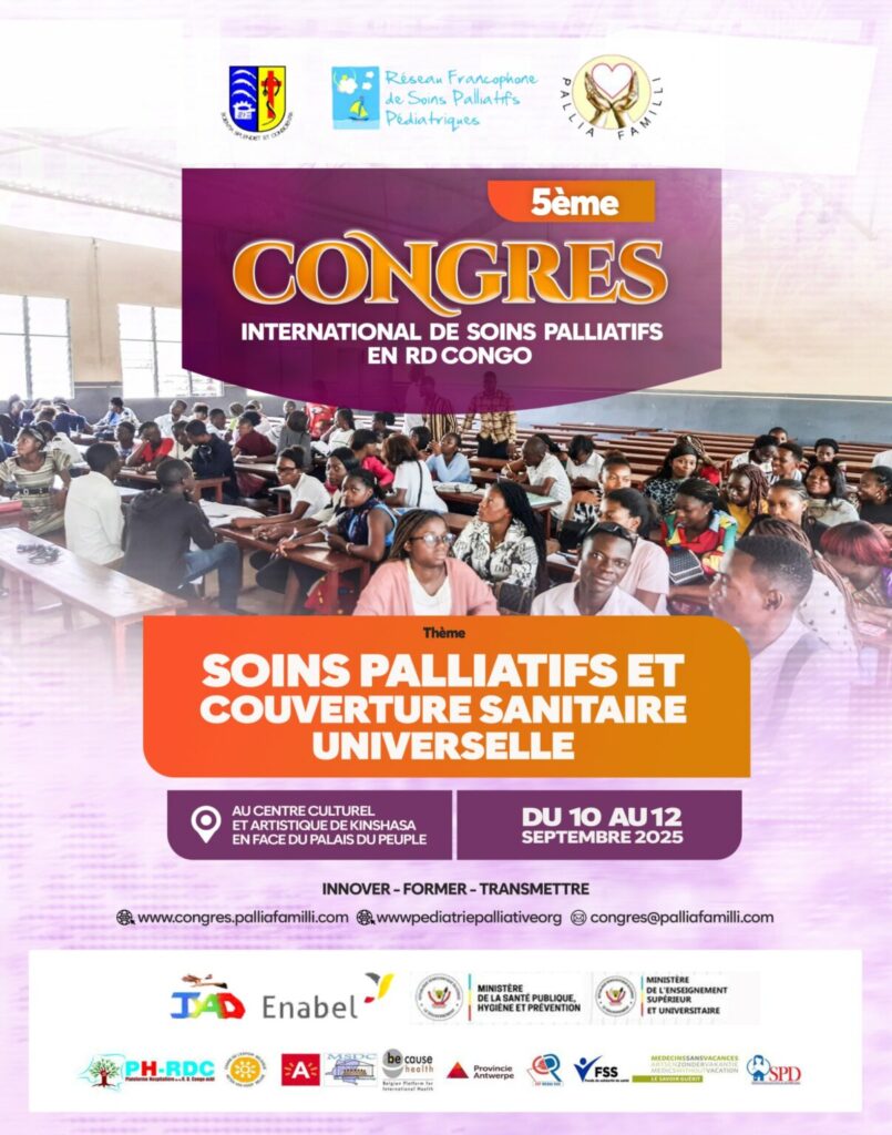 Nous serons heureux de vous accueillir au 5ème congrès international de soins palliatifs à Kinshasa, dont l’objectif principal est de se rencontrer pour échanger et transmettre nos expériences cliniques et humaines de soignants du Sud comme du Nord, car la souffrance ne connait pas de frontière.